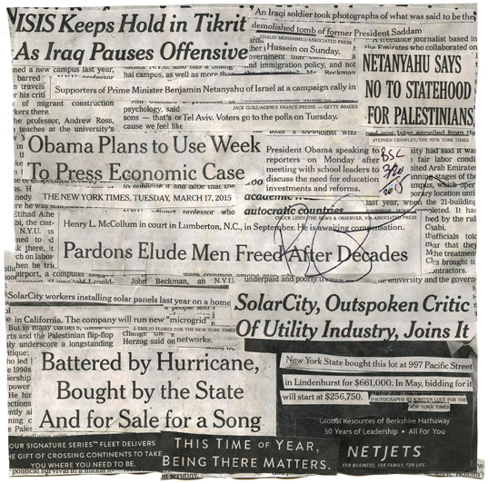 An online repository for Brennan Cavanaugh's "Collisions"; each collage forged from one day's New York Times into a reimagined news.